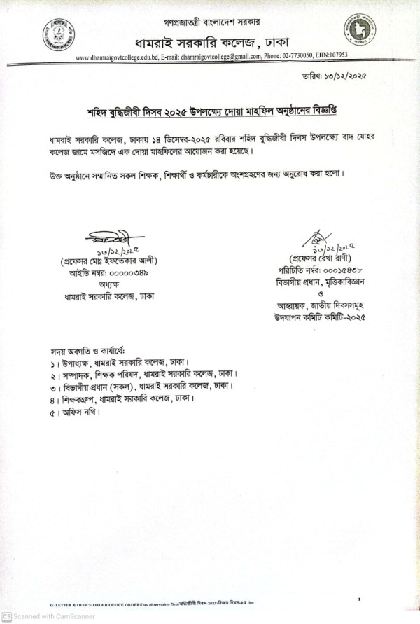 Notice Title : শহিদ বুদ্ধিজীবী দিবস ২০২৫ উলপক্ষ্যে বিশেষ দোয়া মাহফিল অনুষ্ঠানের বিজ্ঞপ্তি