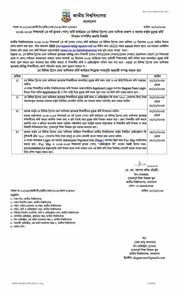 Notice Title : ২০২৪-২০২৫ শিক্ষাবর্ষে ১ম বর্ষ স্নাতক (পাস) ১ম রিলিজ স্লিপে ভর্তি বিষয়ক বিজ্ঞপ্তি