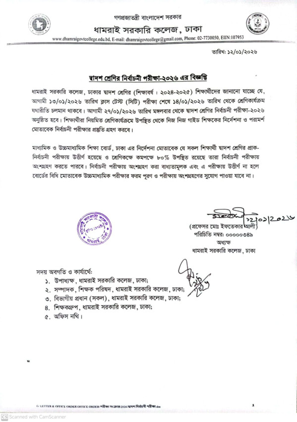 Notice Title : দ্বাদশ নির্বাচনী পরীক্ষা বিষয়ক বিজ্ঞপ্তি