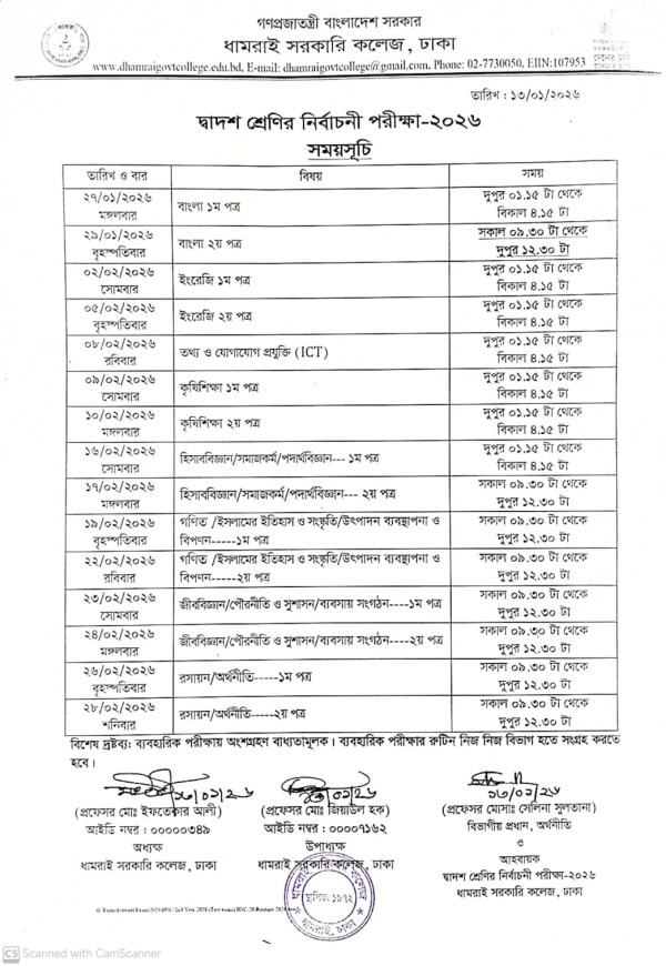 Notice Title : দ্বাদশ শ্রেণির নির্বাচনী পরীক্ষা-২০২৬ এর সময়সূচি