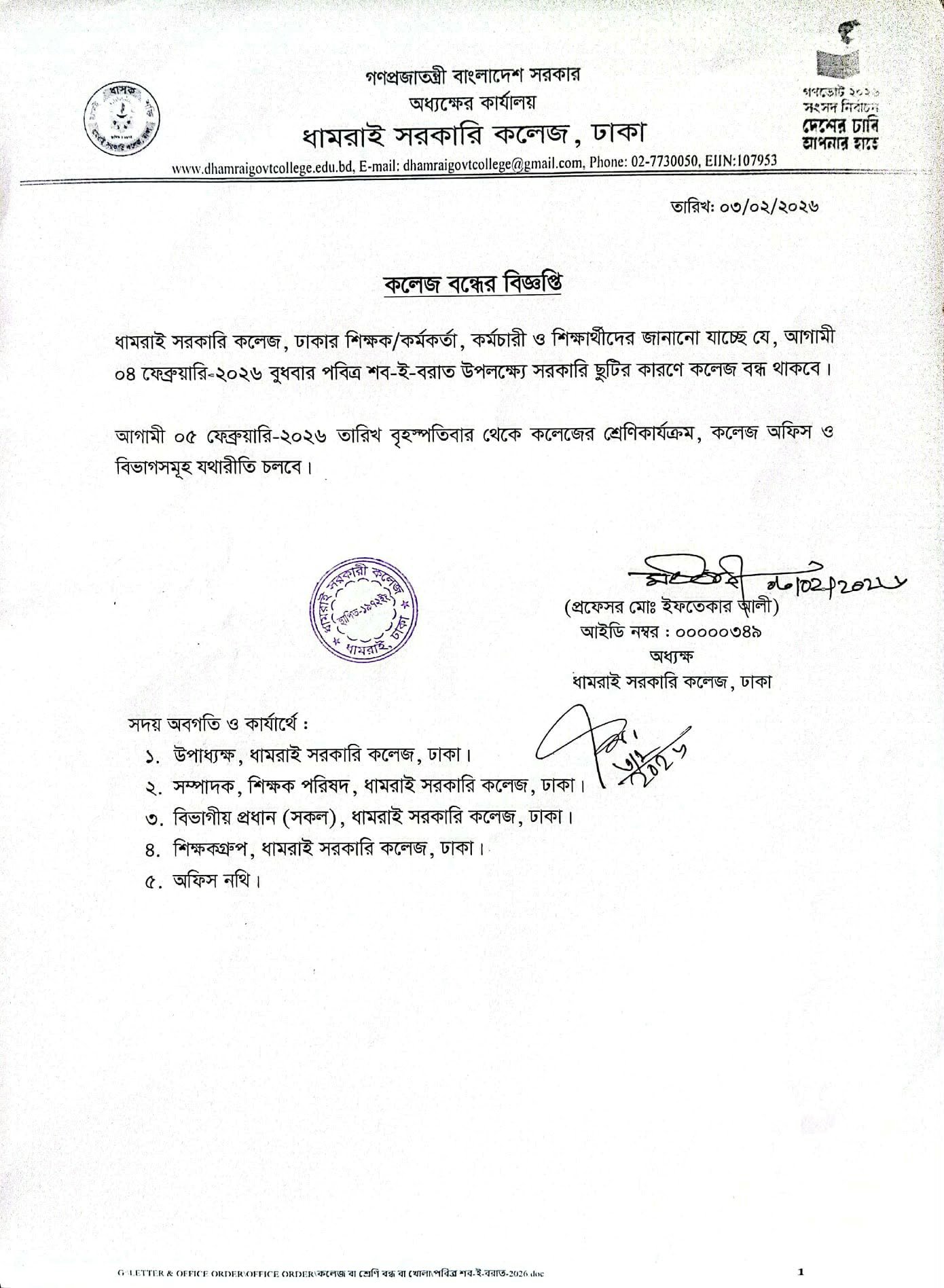 Notice Title : কলেজ বন্ধের বিজ্ঞপ্তি