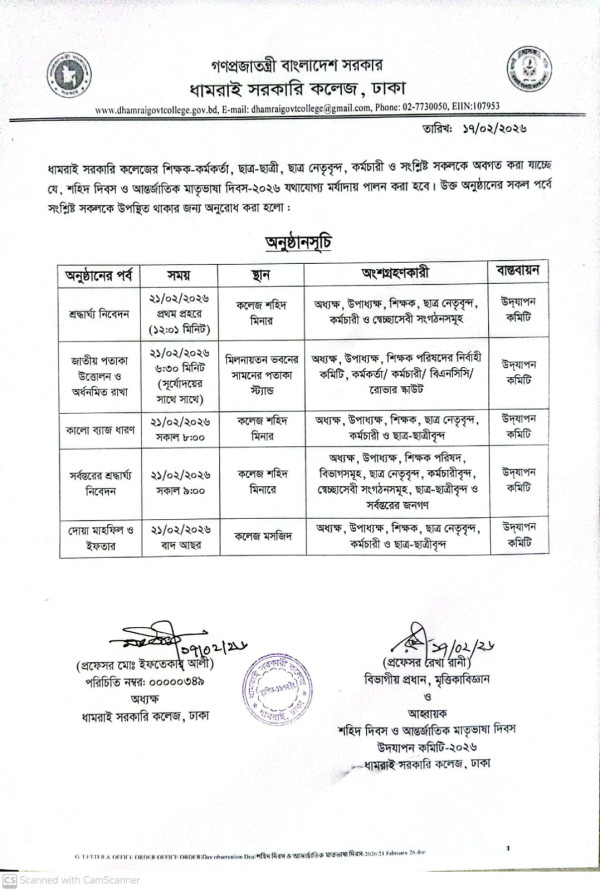 Notice Title : শহিদ দিবস ও আন্তর্জাতিক মাতৃভাষা দিবস-২০২৬ উপলক্ষ্যে অনুষ্ঠানসূচি