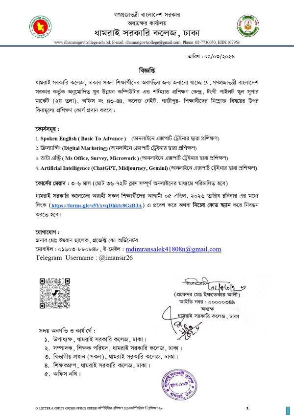 Notice Title : প্রশিক্ষণ বিষয়ক বিজ্ঞপ্তি