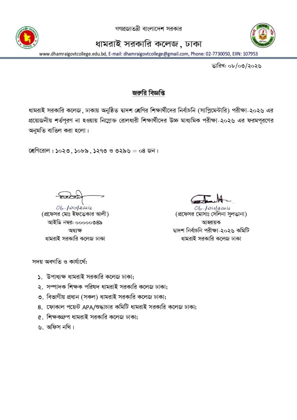 Notice Title : জরুরি বিজ্ঞপ্তি