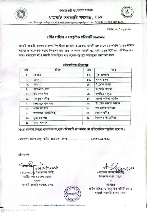 Notice Title : বার্ষিক সাহিত্য ও সাংস্কৃতিক প্রতিযোগিতা বিষয়ক বিজ্ঞপ্তি