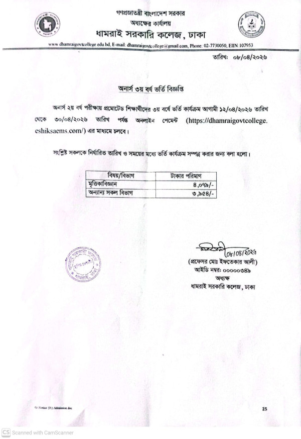 Notice Title : অনার্স তৃতীয় বর্ষে ভর্তি বিষয়ক বিজ্ঞপ্তি