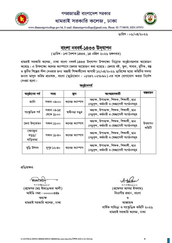 Notice Title : বাংলা নববর্ষ-১৪৩৩ উদযাপন