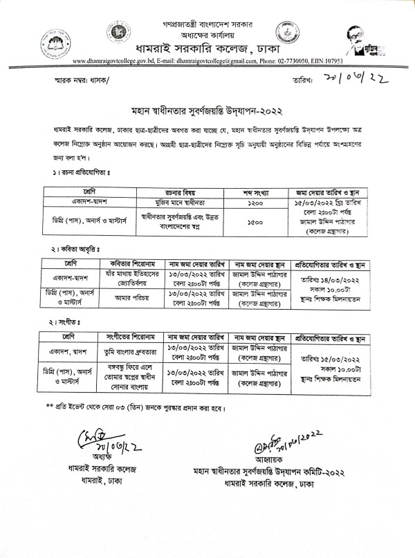 Notice Title : মহান স্বাধীনতার সুবর্ণজয়ন্তি উদযাপন-২০২২