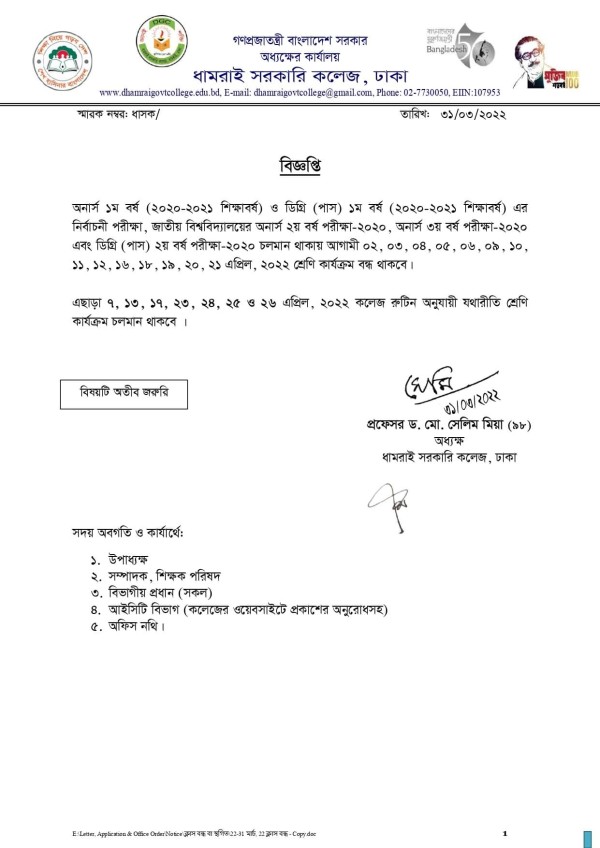 Notice Title : শ্রেণি কার্যক্রম শুরু এর বিজ্ঞপ্তি