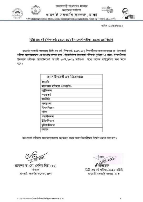Notice Title : ডিগ্রী পাশ ৩য় বর্ষ( শিক্ষাবর্ষ: ২০১৭-১৮ ) এর ইনকোর্স পরীক্ষা ২০২০- এর বিজ্ঞপ্তি