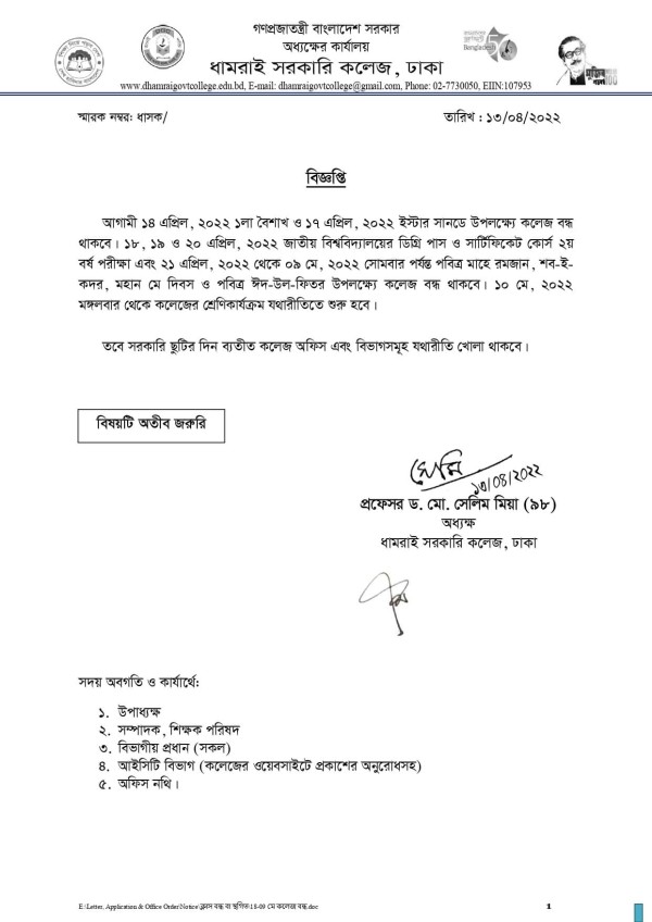 Notice Title : কলেজ বন্ধের বিজ্ঞপ্তি