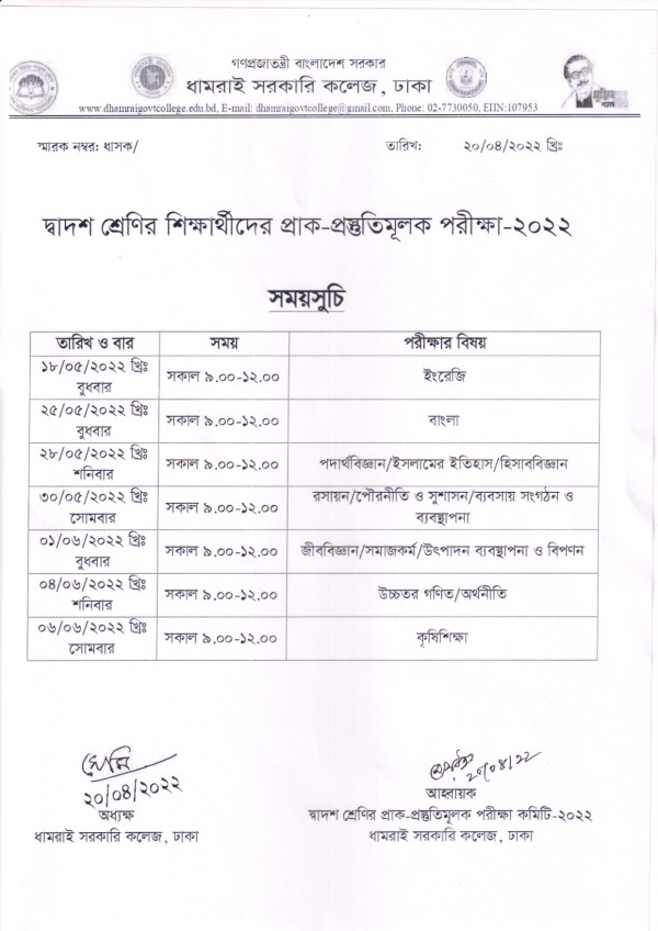 Notice Title : দ্বাদশ শ্রেণির প্রাক- প্রস্তুতিমূলক পরীক্ষা -২০২২ এর রুটিন