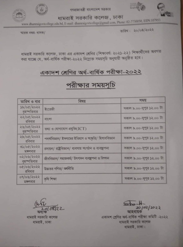Notice Title : একাদশ শ্রেণির অর্ধ-বার্ষিকী পরীক্ষা-২০২২ এর রুটিন