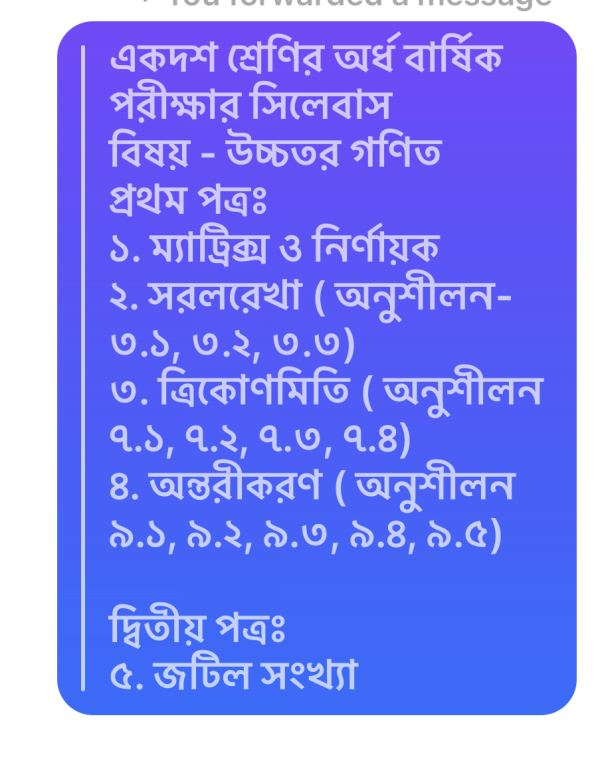 Notice Title : একাদশ শ্রেণির অর্ধ-বার্ষিকী পরীক্ষা-২০২২ গণিতের সিলেবাস