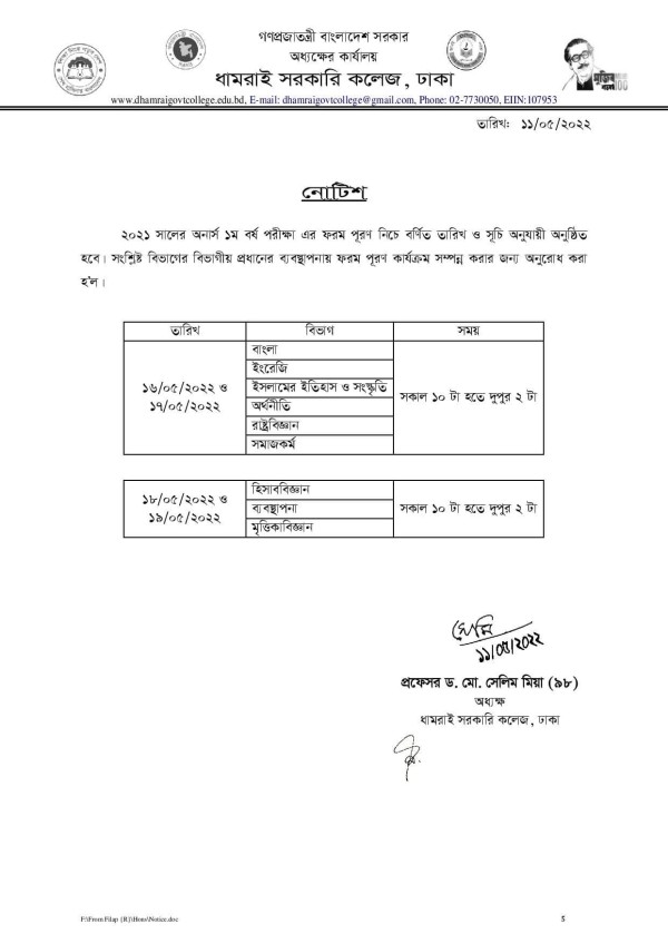 Notice Title : ২০২১ সালের অনার্স প্রথম বর্ষ পরীক্ষার্থীদের ফরম পূরণের বিজ্ঞপ্তি