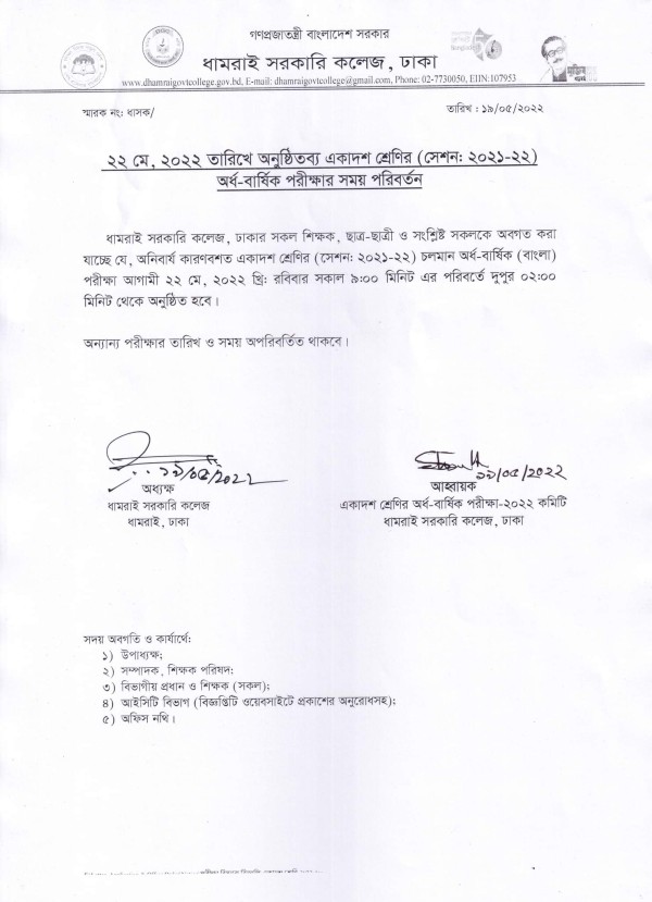 Notice Title : একাদশ শ্রেণির অর্ধ- বার্ষিকী পরীক্ষার সময়সূচি পরিবর্তন প্রসঙ্গে