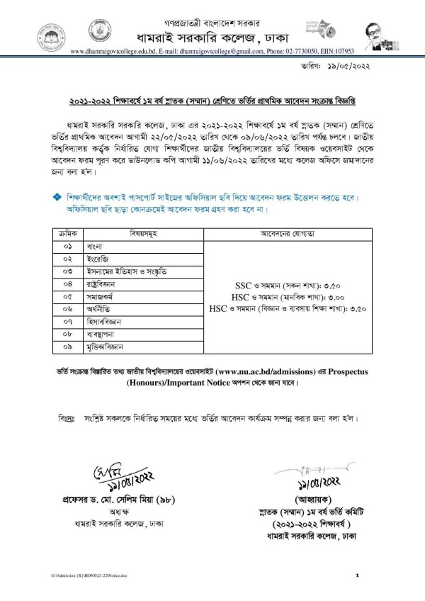 Notice Title : অনার্স ১ম বর্ষ ( শিক্ষাবর্ষঃ ২০২১-২০২২) শ্রেণিতে ভর্তির প্রাথমিক আবেদন সংক্রান্ত বিজ্ঞপ্তি