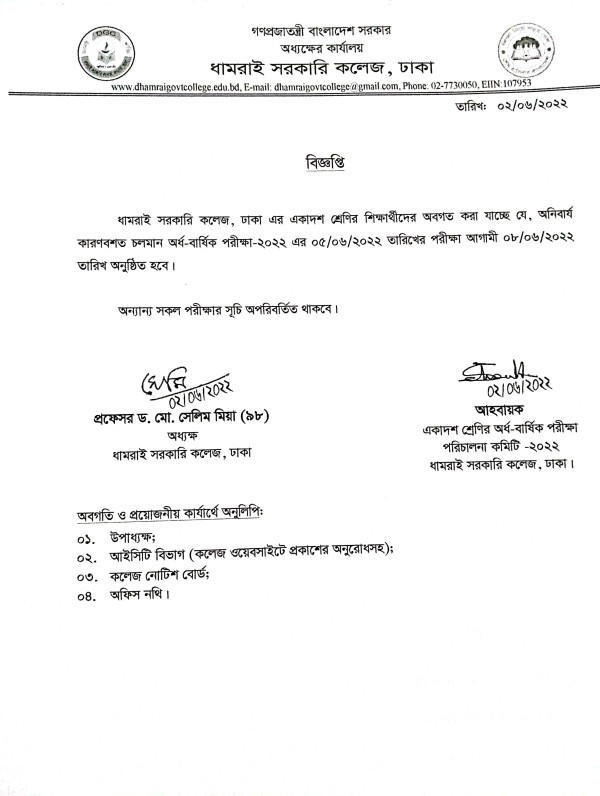 Notice Title : অর্ধ- বার্ষিক পরীক্ষার তারিখ পরিবর্তন প্রসঙ্গে