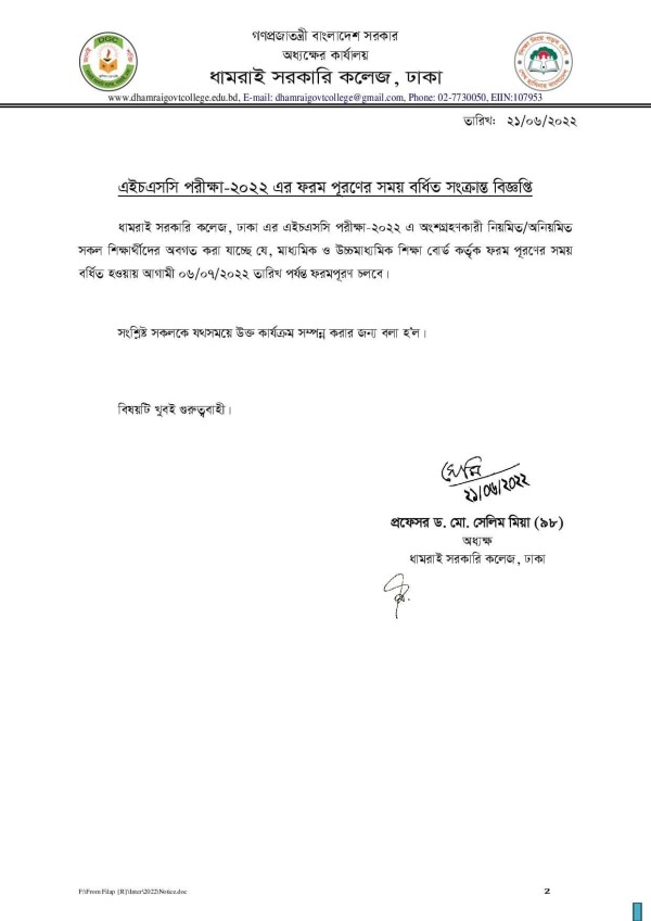 Notice Title : উচ্চমাধ্যমিক পরীক্ষা -২০২২ ফরম পূরণের সময় বর্ধিত প্রসঙ্গে