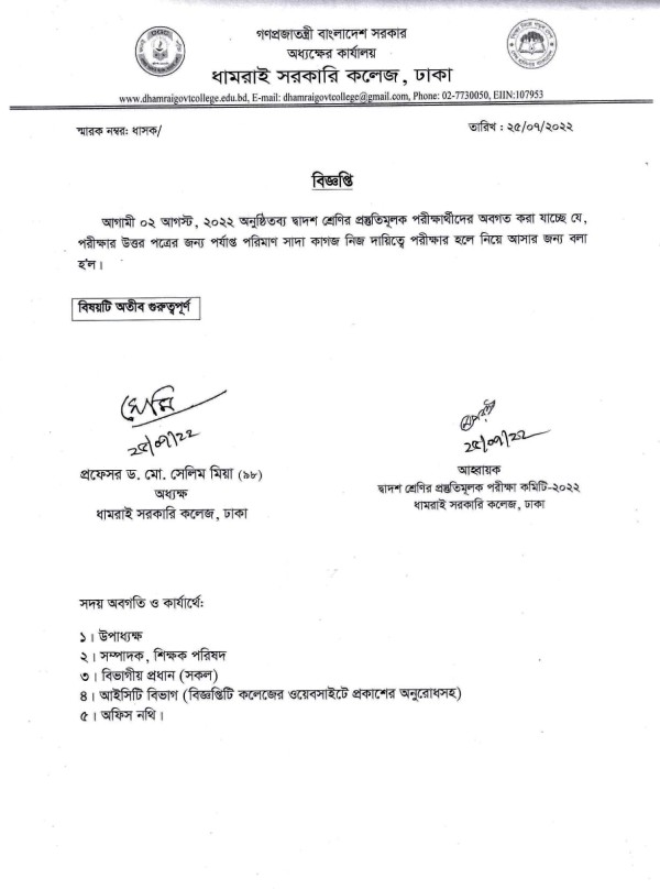 Notice Title : দ্বাদশ শ্রেণীর প্রস্তুতিমূলক পরীক্ষা বিষয়ক বিজ্ঞপ্তি