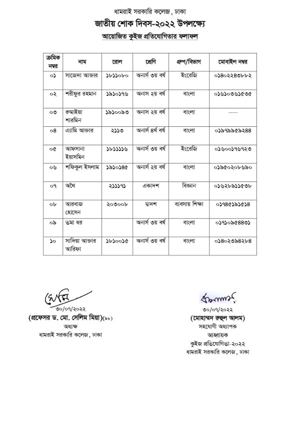 Notice Title : কুইজ প্রতিযোগিতার ফলাফল