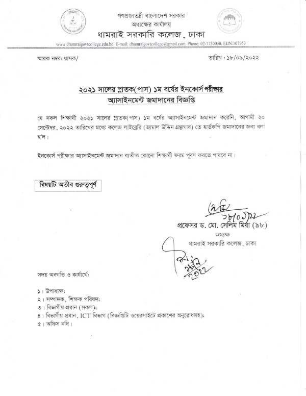 Notice Title : অ্যাসাইনমেন্ট জমা প্রসঙ্গে