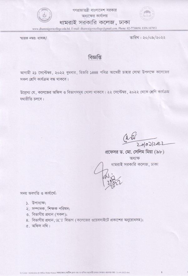 Notice Title : শ্রেণি কার্যক্রম বন্ধের নোটিশ