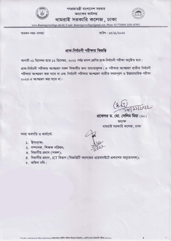 Notice Title : প্রাক নির্বাচনী পরীক্ষা-২০২২ এর বিজ্ঞপ্তি
