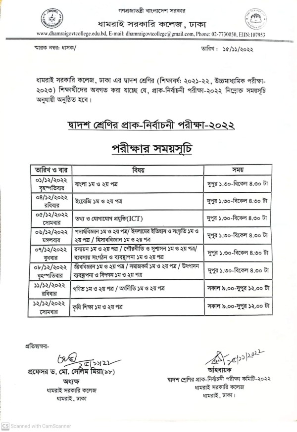 Notice Title : প্রাক নির্বাচনী পরীক্ষা-২০২২ এর সময়সূচি