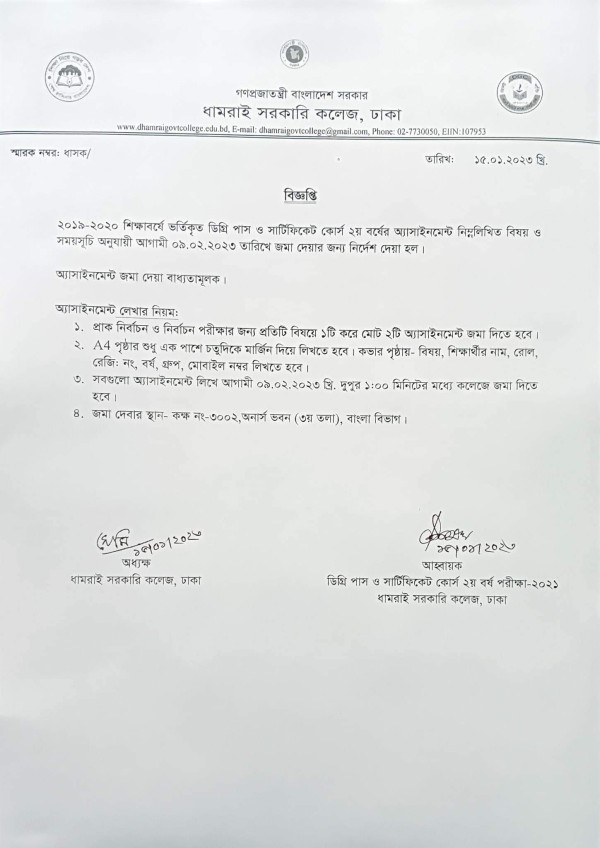 Notice Title : ২০১৯-২০ শিক্ষাবর্ষের ডিগ্রি পাস ও সার্টিফিকেট কোর্স দ্বিতীয় বর্ষ পরীক্ষা ২০২১ এর এসাইনমেন্ট সম্পর্কিত নোটিশ