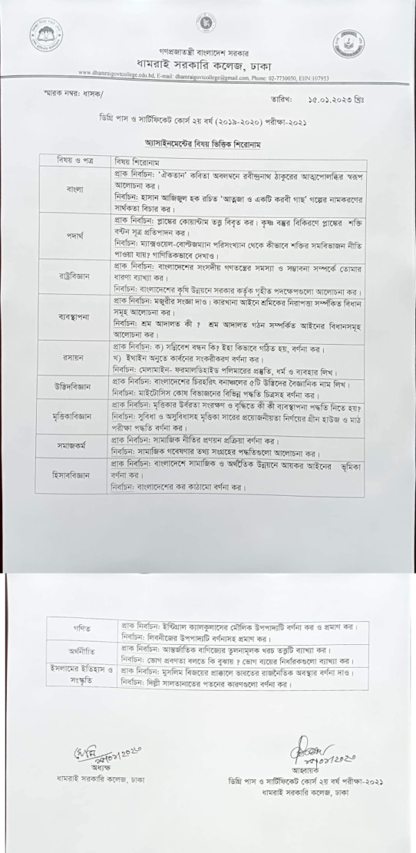 Notice Title : ২০১৯-২০ শিক্ষাবর্ষের ডিগ্রি পাস ও সার্টিফিকেট কোর্স দ্বিতীয় বর্ষ পরীক্ষা ২০২১ এর এসাইনমেন্টের বিষয় শিরোনাম