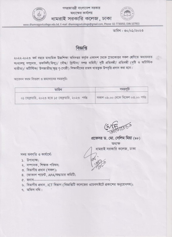 Notice Title : উপবৃত্তি প্রদান প্রসঙ্গে