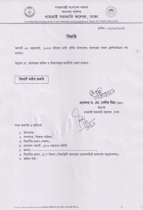 Notice Title : শ্রেণি কার্যক্রম সম্পর্কিত বিজ্ঞপ্তি