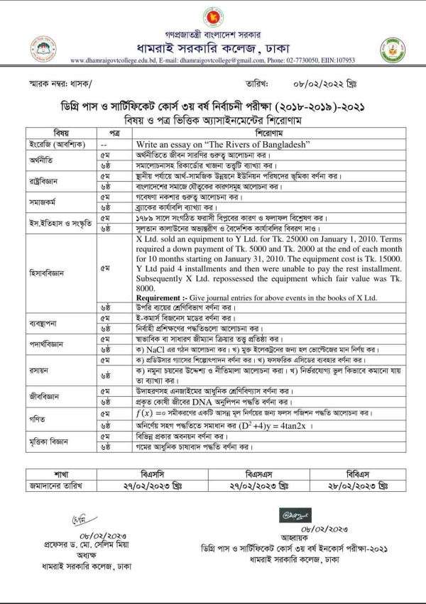 Notice Title : ডিগ্রি ৩য় বর্ষ নির্বাচনী পরীক্ষার বিষয়ভিত্তির অ্যাসাইনমেন্ট