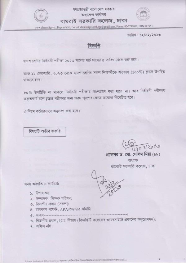 Notice Title : দ্বাদশ শ্রেণির শিক্ষার্থীদের জন্য বিজ্ঞপ্তি