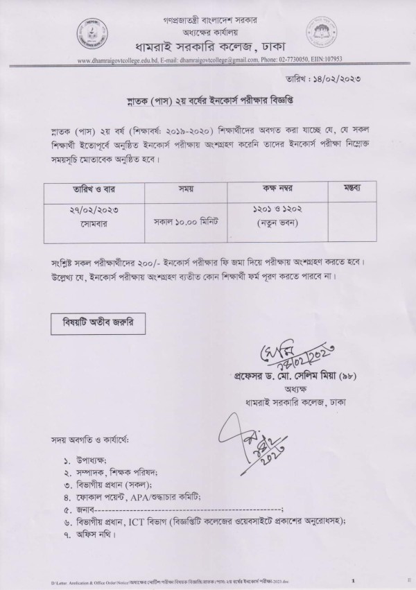 Notice Title : স্নাতক (পাস) ২য় বর্ষের ইনকোর্স পরীক্ষার বিজ্ঞপ্তি