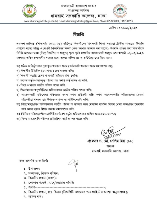 Notice Title : উপবৃত্তির বিজ্ঞপ্তি