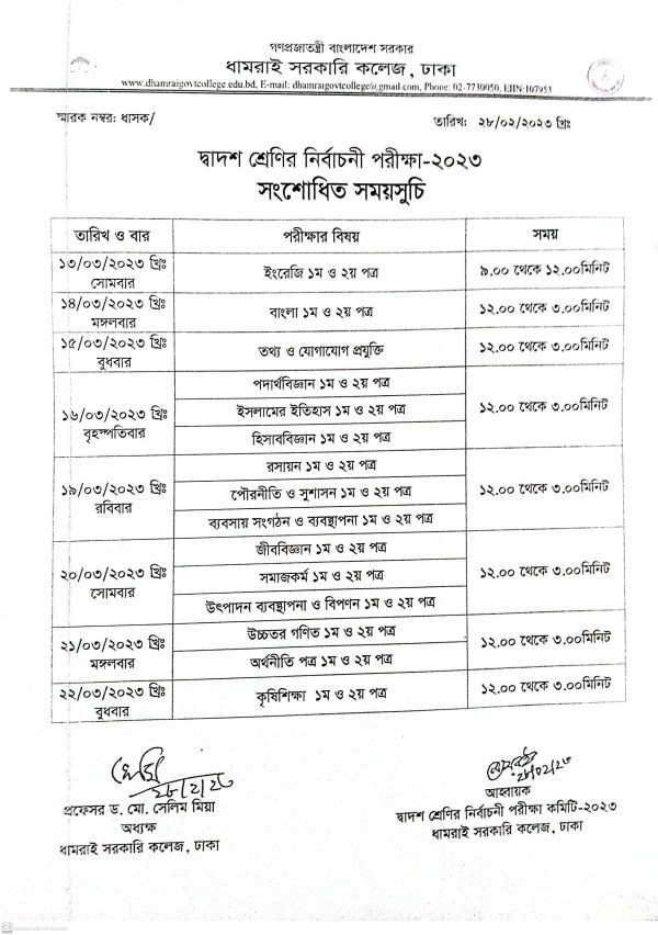 Notice Title : নির্বাচনী পরীক্ষা-২০২৩ এর সংশোধিত সময়সূচি