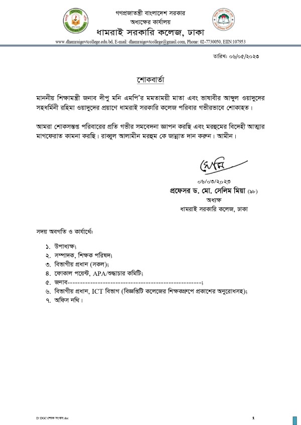 Notice Title : শোকবার্তা