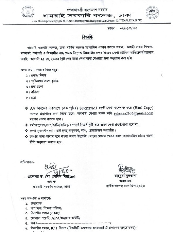 Notice Title : বার্ষিক ম্যাগাজিনে লেখা আহবান