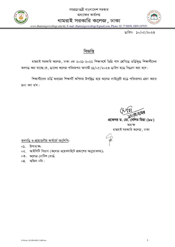 Notice Title : পরিচয় পত্র প্রদান প্রসঙ্গে