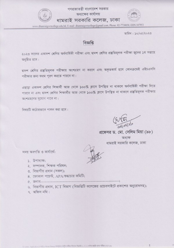 Notice Title : পরীক্ষা ও শ্রেণি কার্যক্রমে উপস্থিতি প্রসঙ্গে
