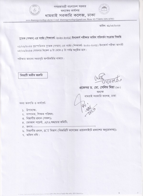 Notice Title : ইনকোর্স পরীক্ষার সময়সূচি পরিবর্তন প্রসঙ্গে