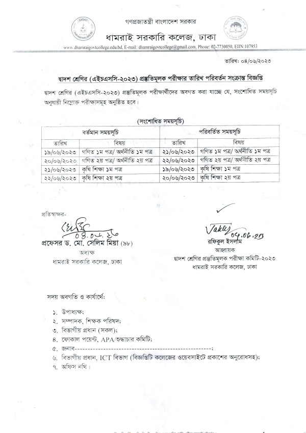 Notice Title : প্রস্তুতিমূলক পরীক্ষার সংশোধিত সময়সূচি