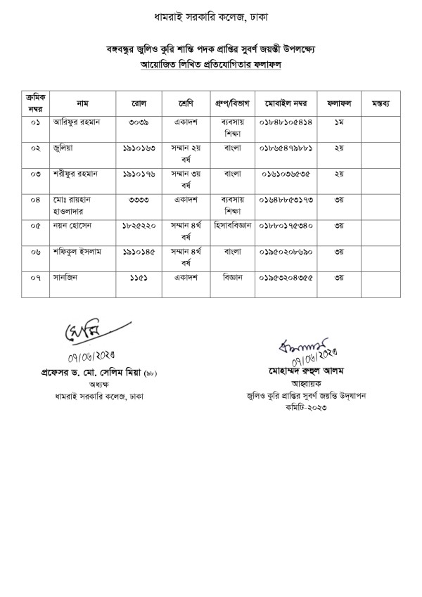 Notice Title : প্রতিযোগিতার ফলাফল