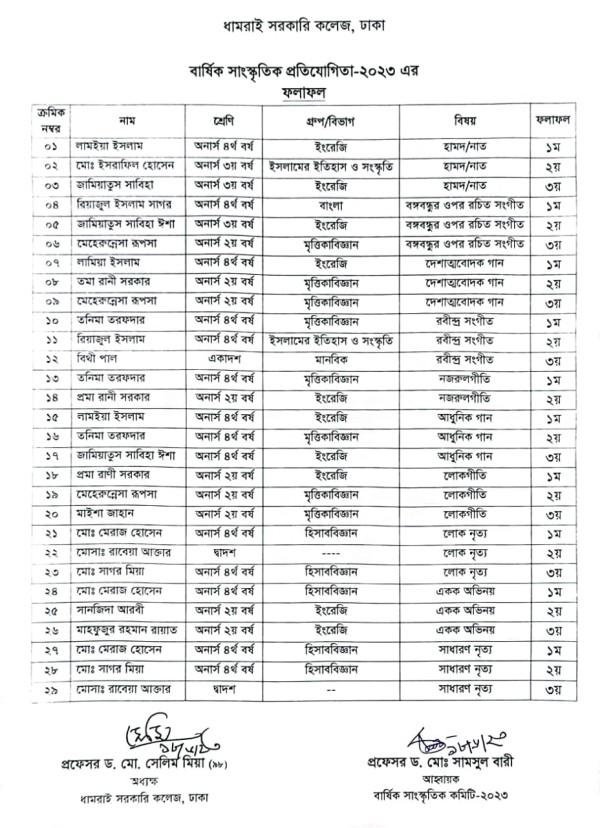 Notice Title : সাংস্কৃতিক প্রতিযোগিতার ফলাফল