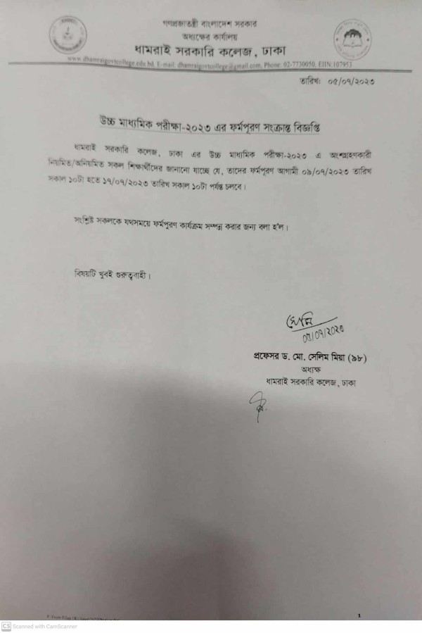 Notice Title : এইচএসসি -২০২৩ পরীক্ষার্থীদের ফরম পূরণ সংক্রান্ত বিজ্ঞপ্তি
