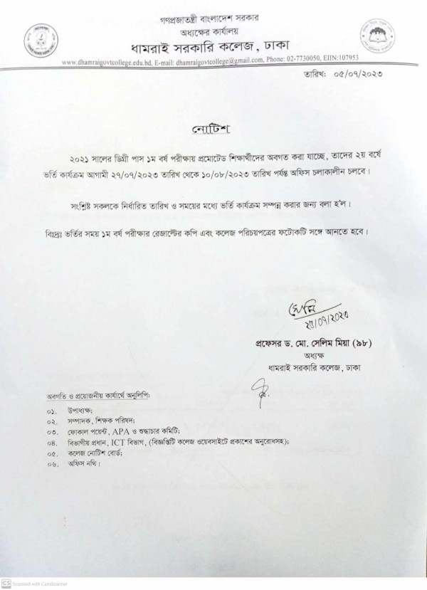 Notice Title : ডিগ্রি ২য় বর্ষে ভর্তি বিজ্ঞপ্তি