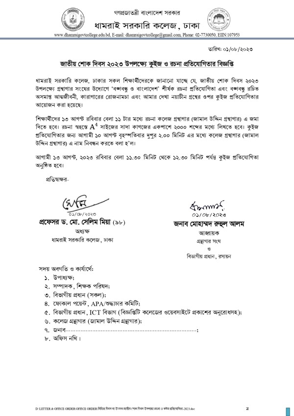 Notice Title : কুইজ ও রচনা প্রতিযোগিতার বিজ্ঞপ্তি