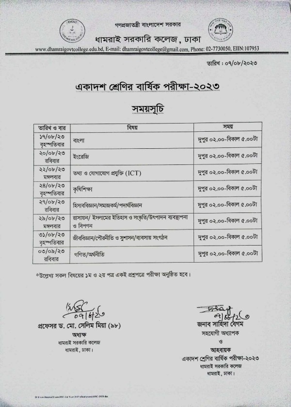 Notice Title : একাদশ শ্রেণি বার্ষিক পরীক্ষার সময়সূচি